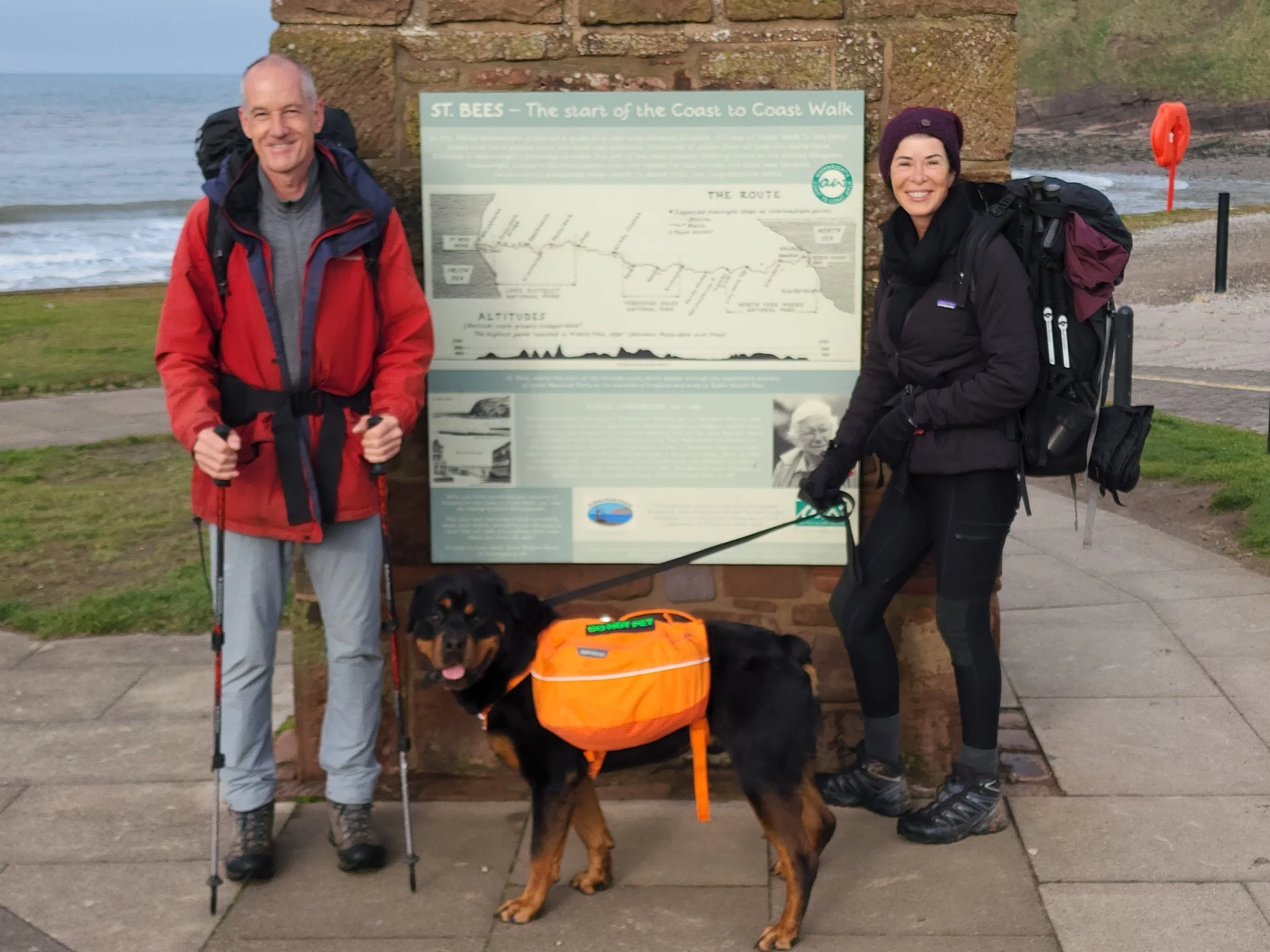 The Coast to Coast Path is well serviced and as well as arranging for C2C Packhorse to transport our surplus luggage to Robin Hood’s Bay, we had also packed three small bags with dry dog biscuits and dehydrated mince (each weighing 5kg) which would be dropped off at strategic points along the way for Leroy. All of these bags were collected the following morning after which, on the advice of Carole who I think was trying to get us out of the farm, we walked the first 6 miles of the Coast to Coast before looping back to St Bees. After a quick visit to the Manor Hotel for some pub grub and a tasting of the local cask ale, we were early to bed and excited/apprehensive to get started on our attempt to walk across England.