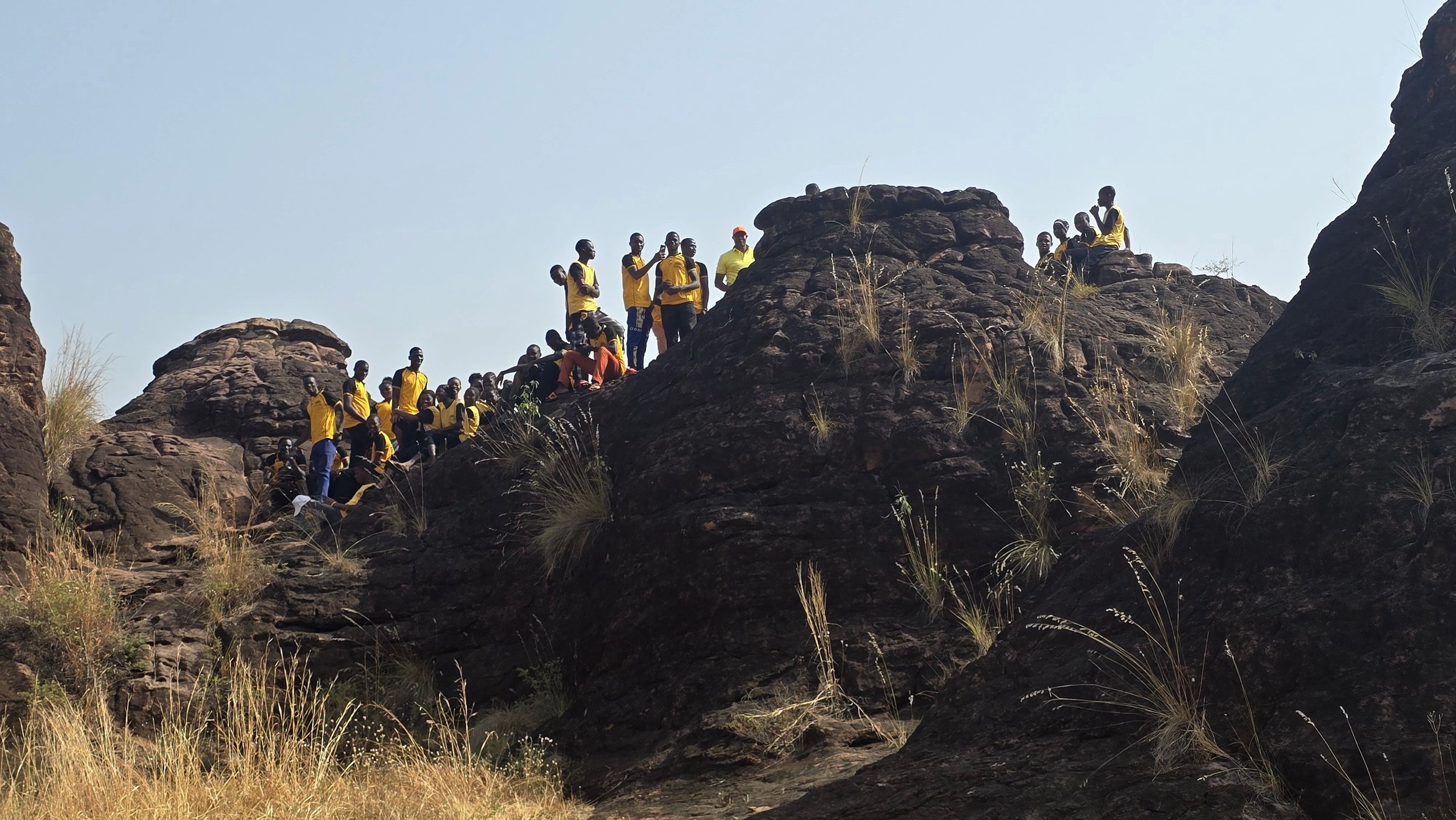 We continued to the country’s second largest city, Bobo-Dioulasso, stopping at the Sindou Peaks and Domes of Fabedougou, striking landscapes of ancient, weathered sandstone. Clambering onto the top of one of the towering formations, we surprised (and were surprised by) 30 teenagers in bright “Friends of the Earth” shirts. Shy at first, they soon started practicing their English and walked partway back with us, curious about our journey.