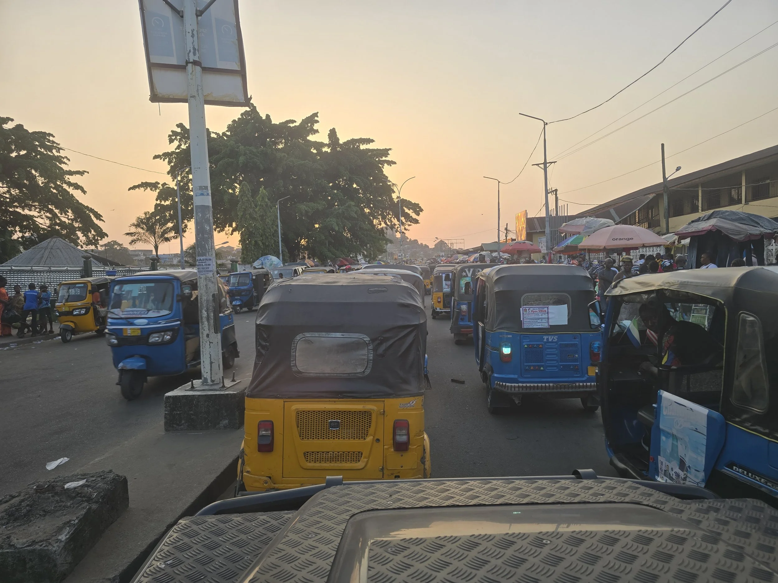 Once over the lowered rope and leaving the border nonsense behind, we headed straight for Freetown, a capital founded in the late 18th century by British abolitionists.  Its early settlers included the Black Poor of London, later joined by Black Loyalists from Nova Scotia and Jamaica.  While the settlement provided a home for freed and formerly enslaved Africans, it also established a British colony that primarily served imperial interests.  Driving into the city, the layers of history were unmistakable: colonial buildings in various states of decay, street names like Freedom Way and Independence Drive hinting at past aspirations, and a port that still anchors the economy.